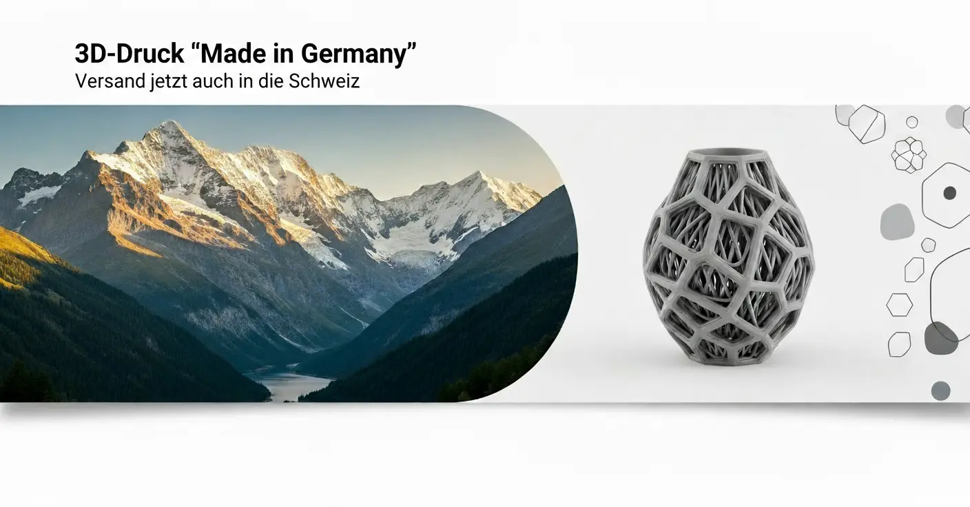 Wir freuen uns riesig, Ihnen jetzt auch einen Service für Bestellungen aus der Schweiz anzubieten! Sie können jetzt einfach und sicher bei schmelzkammer.de einkaufen und Ihre 3D-Druckprodukte direkt nach Hause in die Schweiz geliefert bekommen.